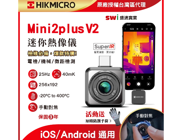- 紅外線分辨率:256 × 192(49,152 像素)