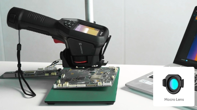 搭配微距鏡頭,即可變⾝為熱成像顯微鏡,適用於需要對微⼩細節進行溫度觀察的場景。