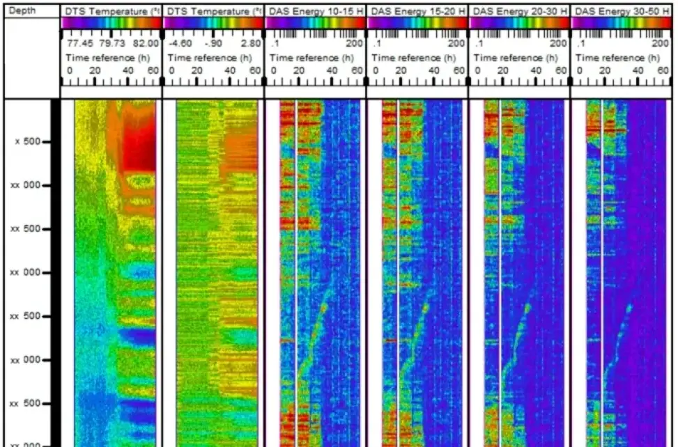 圖 2:DAS 與 DTS 數據。呈現儲層區段