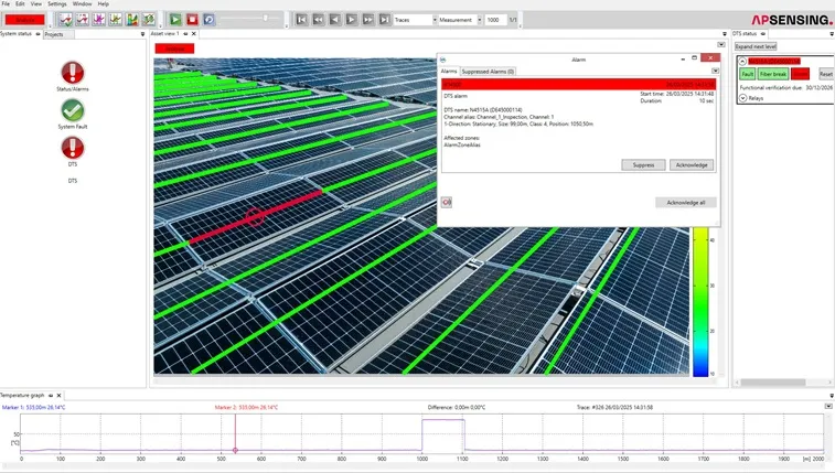 例如,在一條 10 公里長的電纜上,該系統每 5 秒可以監測 10,000 個溫度點,從而快速偵測熱點和火災。