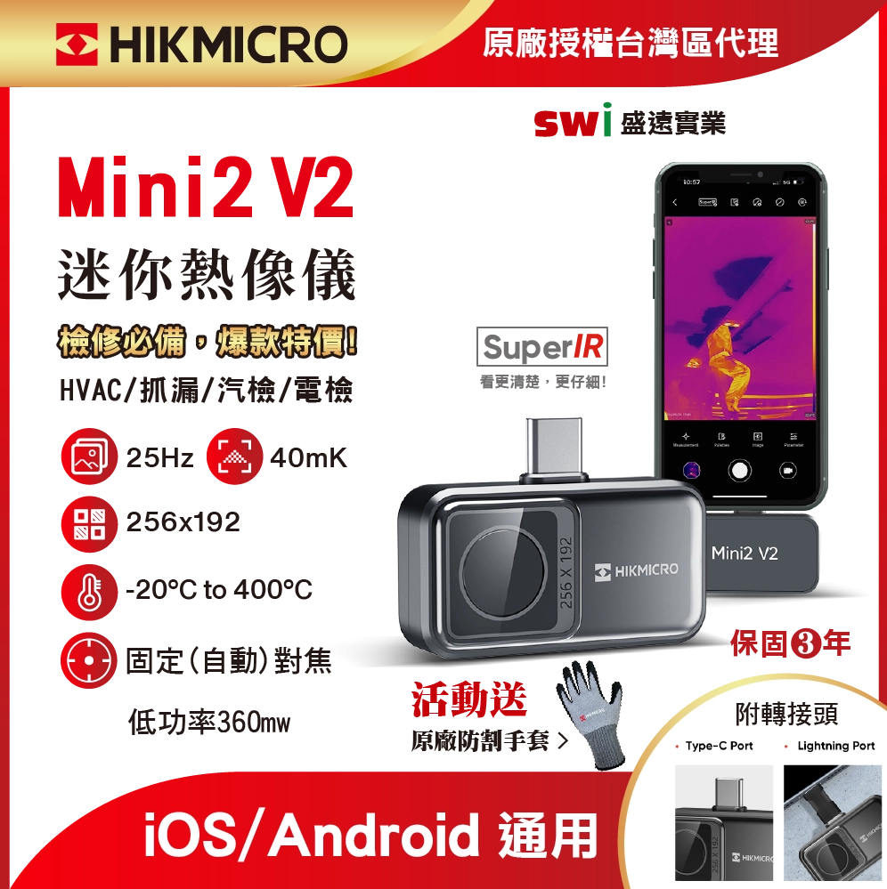 - 紅外線分辨率:256 × 192(49,152 像素)