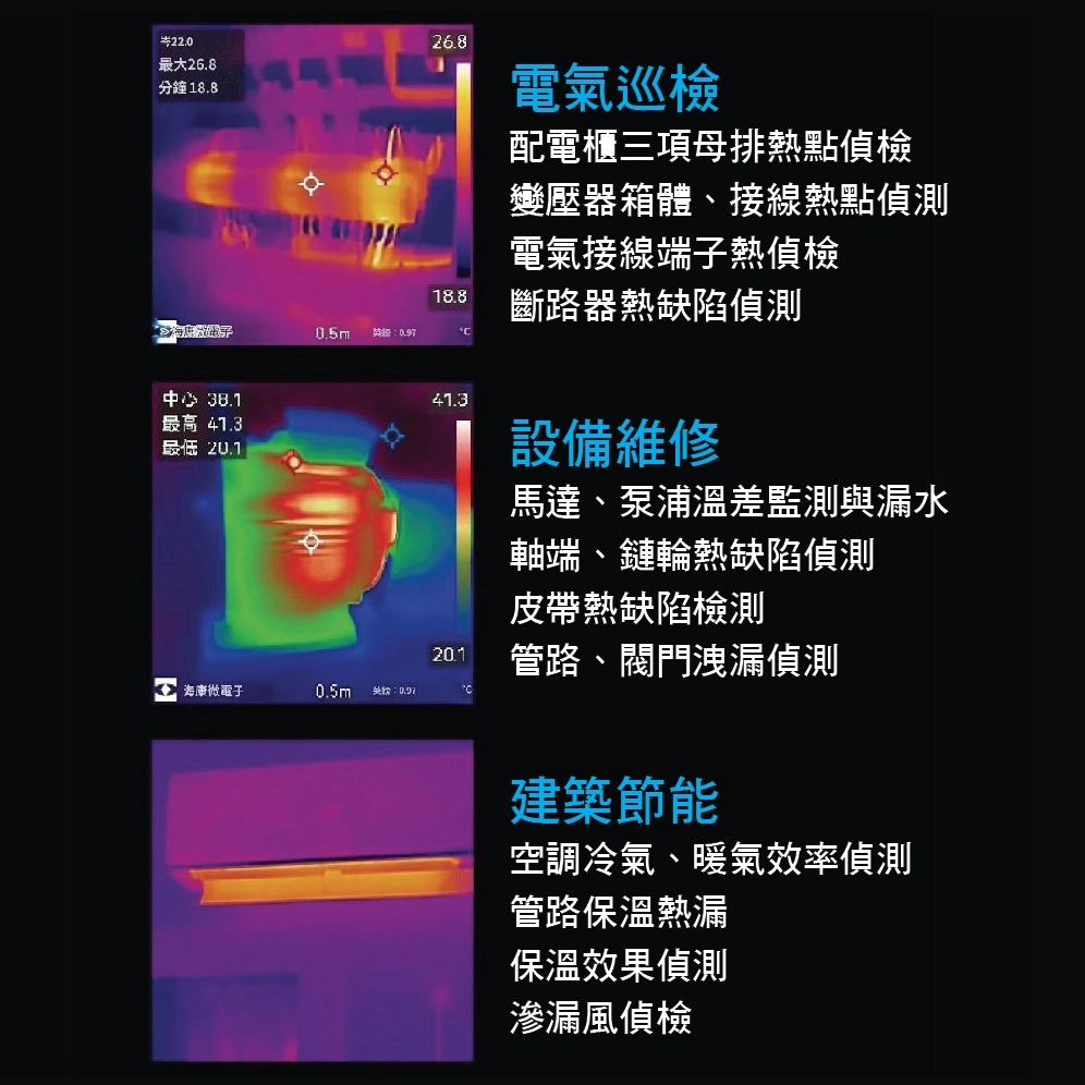 - 手持式熱像儀基於熱成像技術,專門針對溫度測量應用需求而設計,人們可以在現場快速排除故障