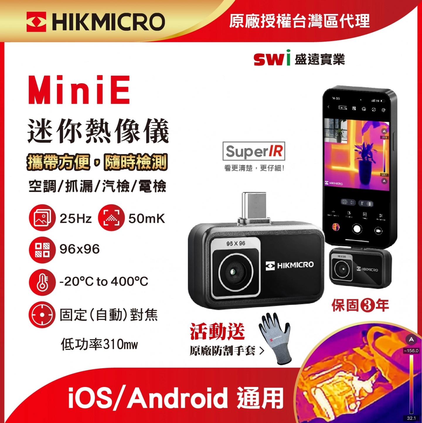 MiniE 都能成為您熱成像需求中的萬用手機熱像儀。
