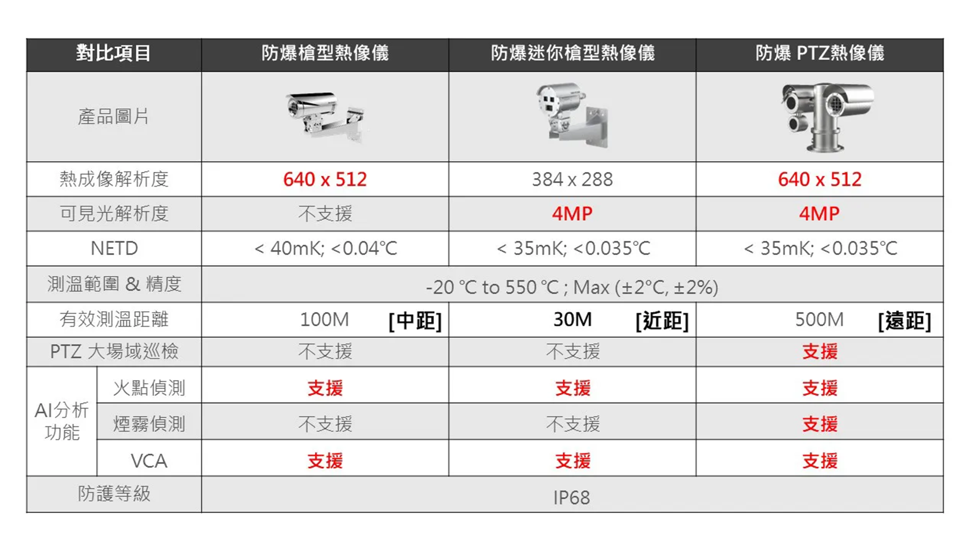 - 熱像儀解析度 384 × 288,高靈敏度氧化釩非製冷探測器