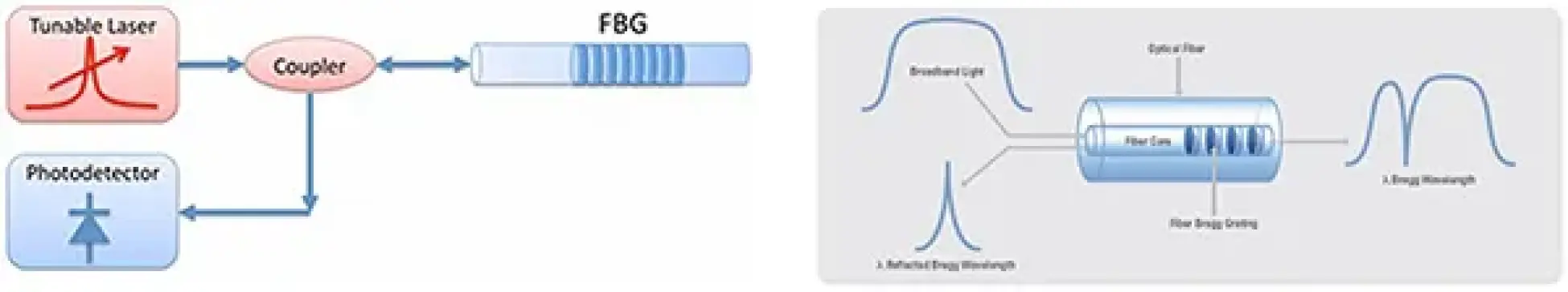 光纖光柵加速度感測器外觀採用不鏽鋼金屬材質封裝,內部採雙光纖光柵設計,藉由感測器內部質量塊,因外在震動方向與量測軸一致,使得光纖光柵波長產生變化,以達到加速度數值與波長改變量成一線性關係,並具有高靈敏感應之特性。
