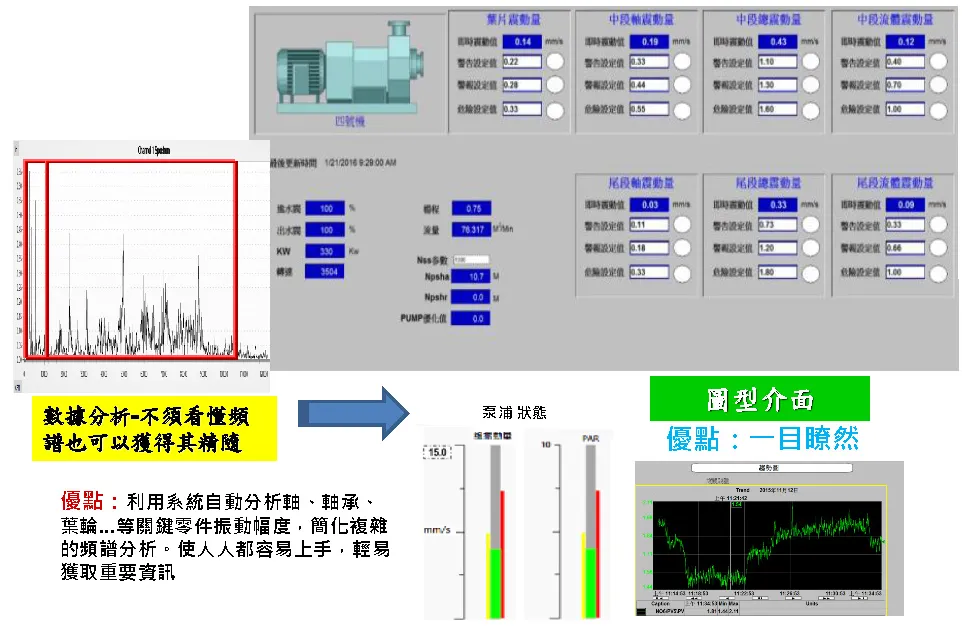 - 採用振動監測之時效性與法理性(已納入ISO規範)優於其他非破壞檢測(如:溫度監測),來保護機台設備,建立預警機制。